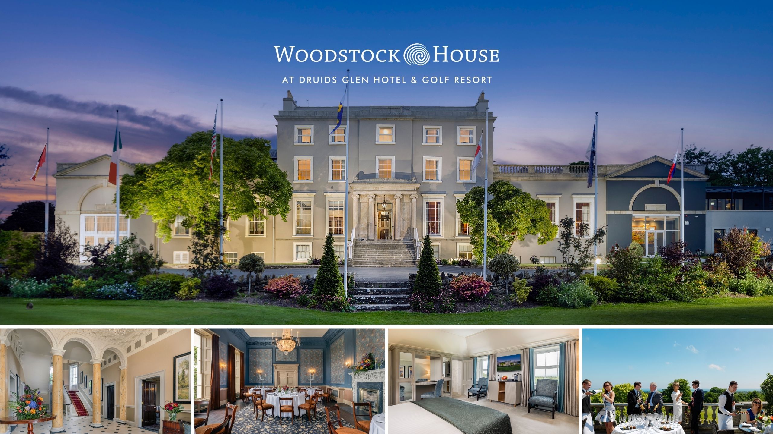 At the 5 star Druids Glen Hotel & Golf Resort, nature and luxury meet to create a memorable escape. Nestled in 360 acres of countryside between the Wicklow Mountains and the Irish Sea, yet only thirty minutes from Dublin, Druids Glen provides a sanctuary from the hustle and bustle of everyday life. The resort features 145 spacious guestrooms and suites, eight conference and event spaces, dining options to include Hugo’s Restaurant, the Garden Rooms and Bar, Sycamore Lounge along with a Spa, Health Club and two championship golf courses, Druids Glen and Druids Heath. Experience authentic Irish hospitality and allow us to take care of you while you soak up our incredible surroundings. Settle into a relaxed pace of life and enjoy the warm, attentive service from our team.